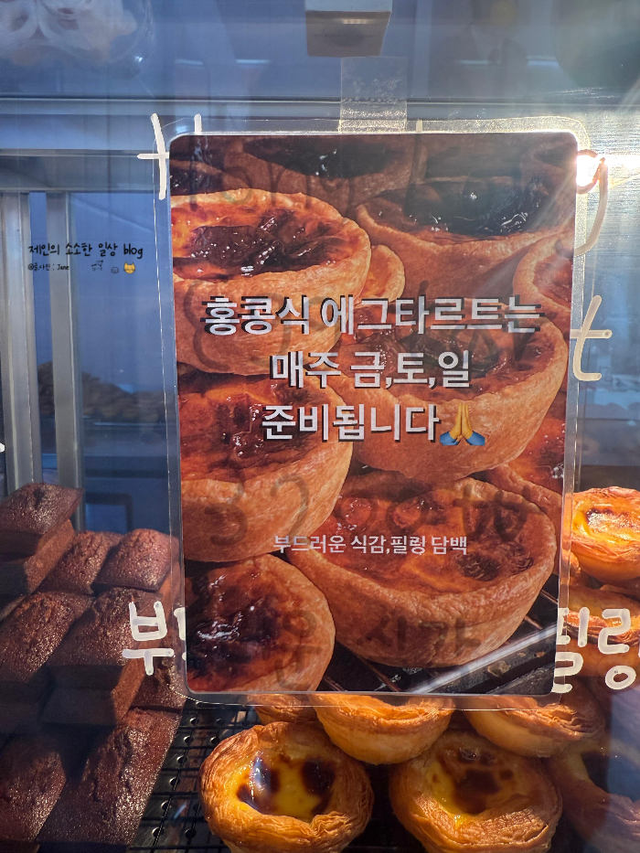 평일 수요일 오후 5시에 일산밤리단길맛집으로 입소문이 꽤 나 있어서 궁금했는데, 포장만 하는 집이라 동선이 가벼워 더 좋았습니다. 풍산역에서 도보 9~10분, 골목 끝 빨간 사각 간판이 멀리서도 눈에 띄어요. 에그타르트가 특히 유명한 곳이라 평일에도 수량이 빠르게 줄 수 있다길래, 타이밍 맞춰 휘낭시에와 포르투갈 에그타르트를 골라 담았습니다.